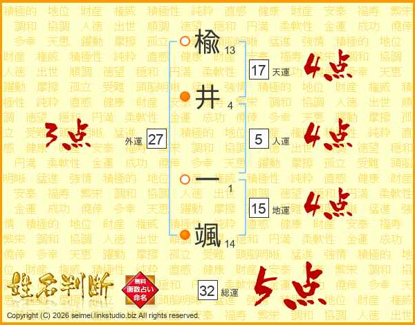 楡井一颯さんの総運は32画の5点!