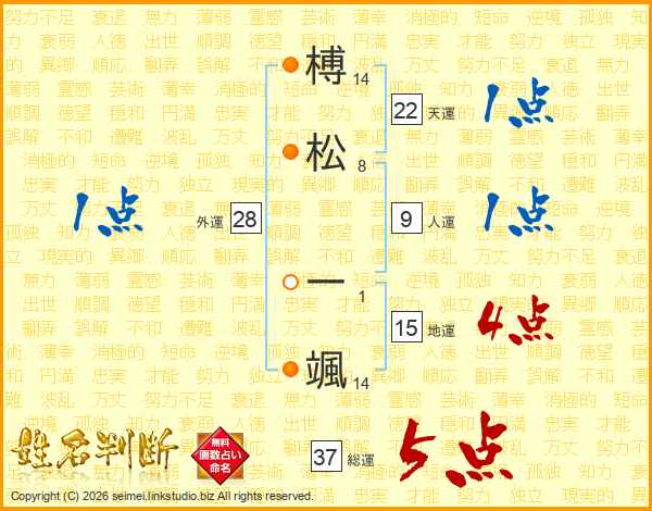 榑松一颯さんの総運は37画の5点!