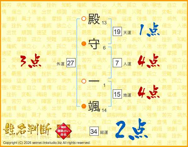 殿守一颯さんの総運は34画の2点!
