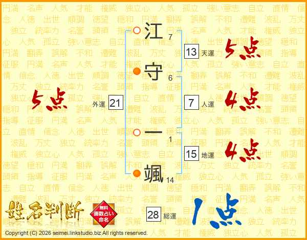 江守一颯さんの外運は21画の5点!