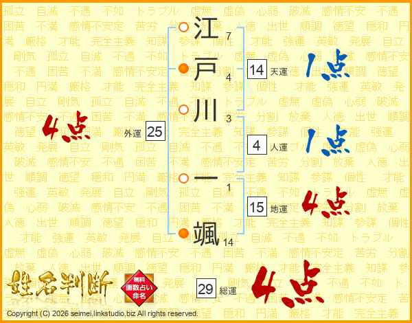 江戸川一颯さんの総運は29画の4点!