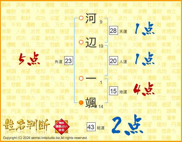 河辺一颯さんの総運は43画の2点!