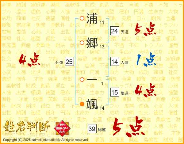 浦郷一颯さんの総運は39画の5点!