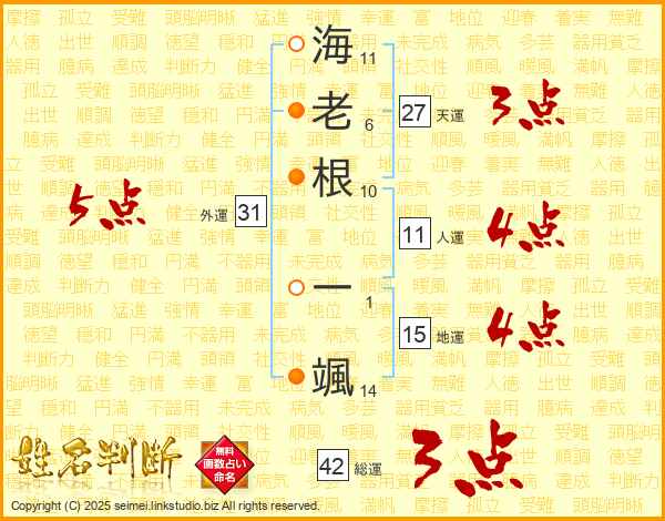海老根一颯さんの人運は11画の4点!