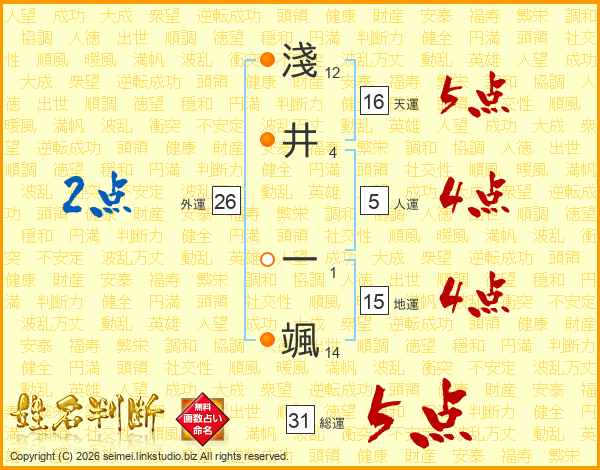 淺井一颯さんの総運は31画の5点!