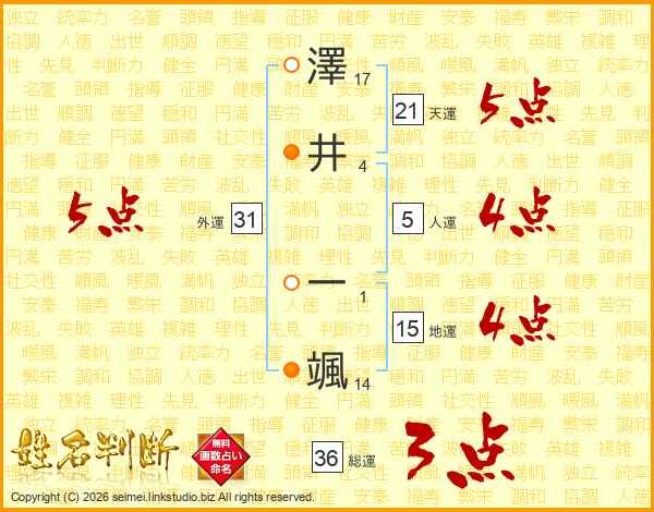 澤井一颯さんの天運は21画の5点!