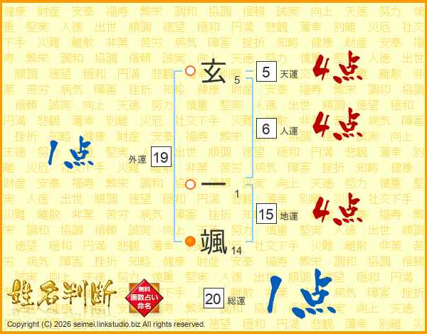 玄一颯さんの総運は20画の1点!