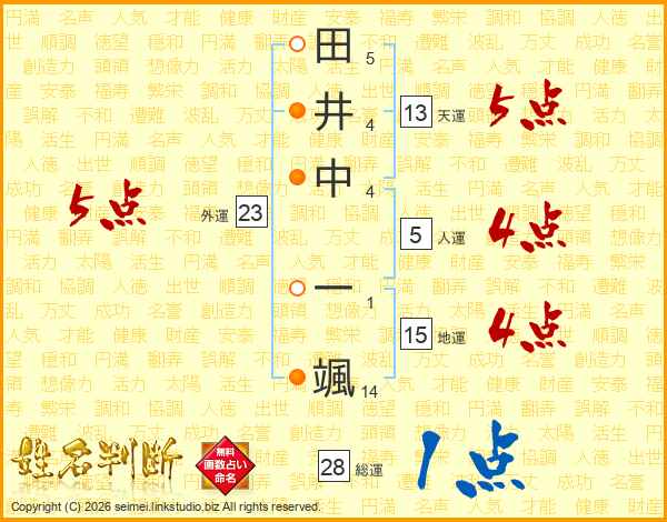 田井中一颯さんの天運は13画の5点!