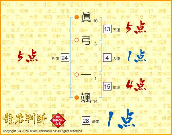 眞弓一颯さんの天運は13画の5点!