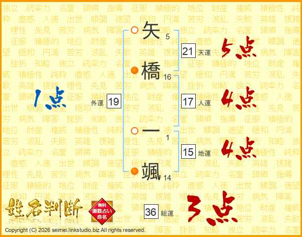矢(5画)橋(16画) 一(1画)颯(14画)