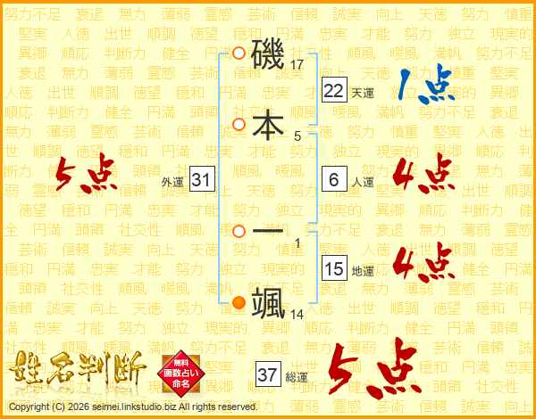 磯本一颯さんの総運は37画の5点!