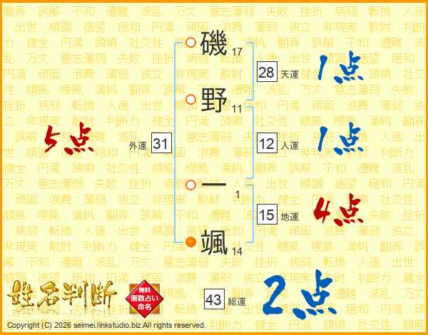 磯野一颯さんの総運は43画の2点!