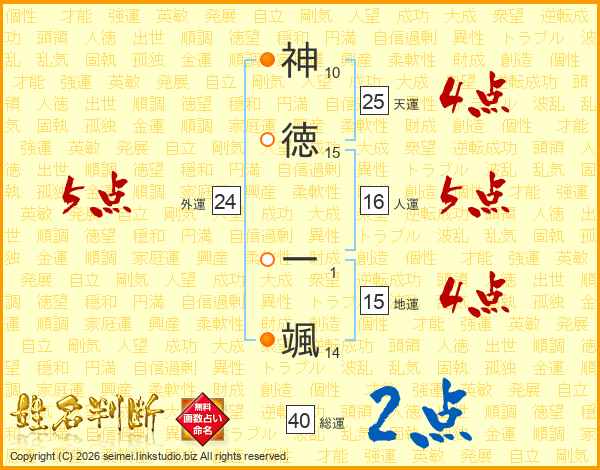 神(10画)徳(15画) 一(1画)颯(14画)