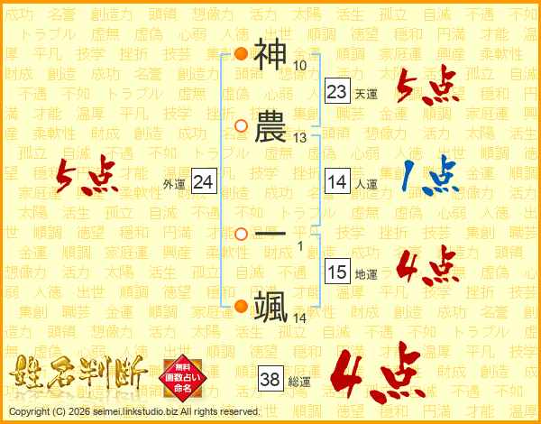神農一颯さんの総運は38画の4点!
