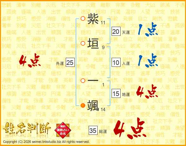 紫(11画)垣(9画) 一(1画)颯(14画)