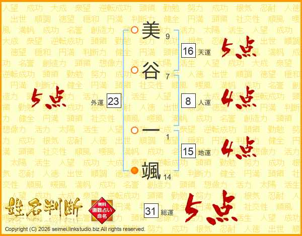 美谷一颯さんの総運は31画の5点!