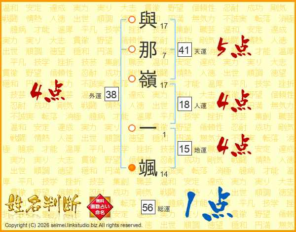與那嶺一颯さんの総運は56画の1点!