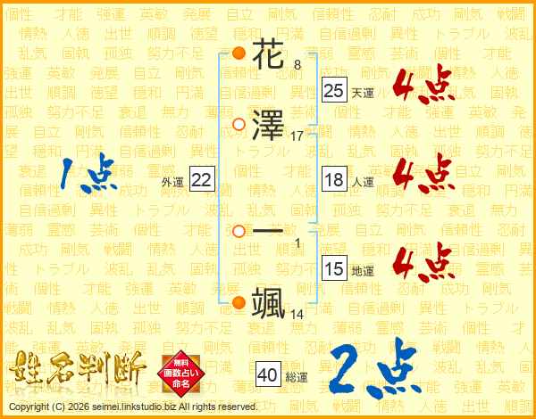 花澤一颯さんの総運は40画の2点!