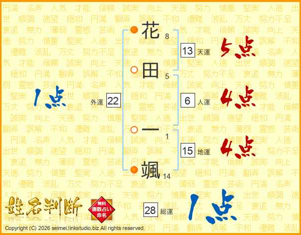 花田一颯さんの総運は28画の1点!