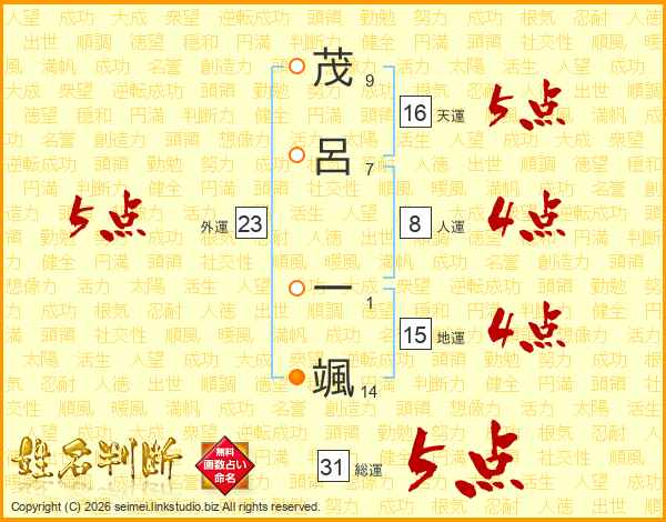 茂呂一颯さんの総運は31画の5点!