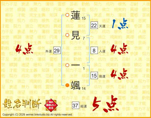 蓮見一颯さんの総運は37画の5点!
