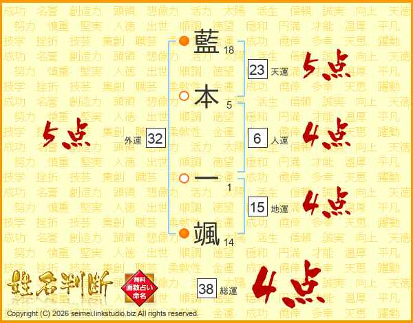 藍本一颯さんの総運は38画の4点!