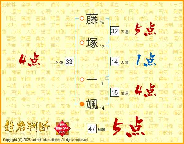 藤塚一颯さんの総運は47画の5点!