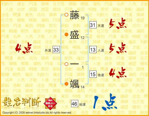 藤(19画)盛(12画) 一(1画)颯(14画)