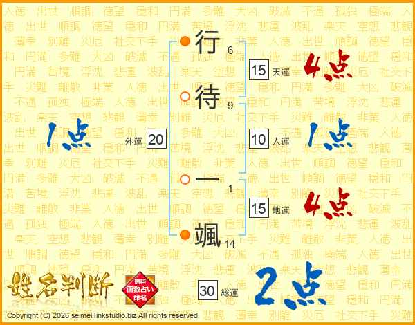 行待一颯さんの地運は15画の4点!
