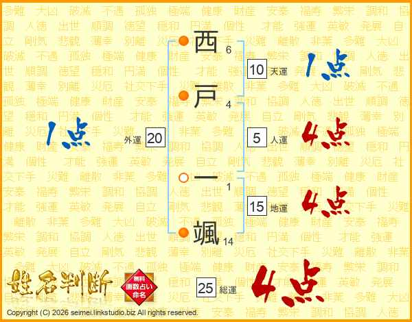 西戸一颯さんの総運は25画の4点!