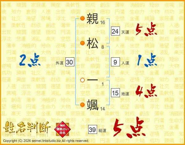 親松一颯さんの総運は39画の5点!