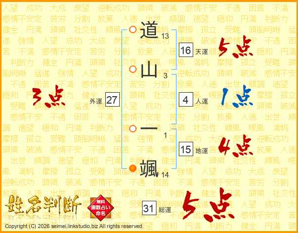 道山一颯さんの総運は31画の5点!