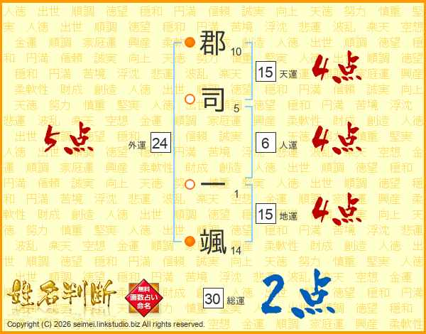 郡司一颯さんの天運は15画の4点!