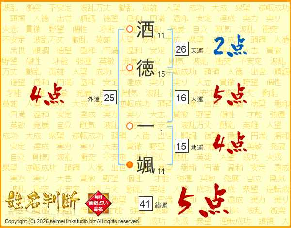 酒徳一颯さんの総運は41画の5点!