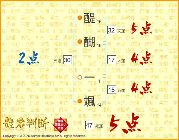 醍醐一颯さんの総運は47画の5点!