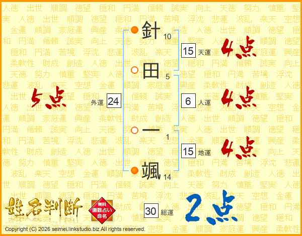 針田一颯さんの外運は24画の5点!