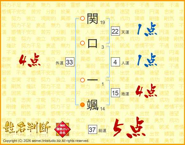 関口一颯さんの総運は37画の5点!