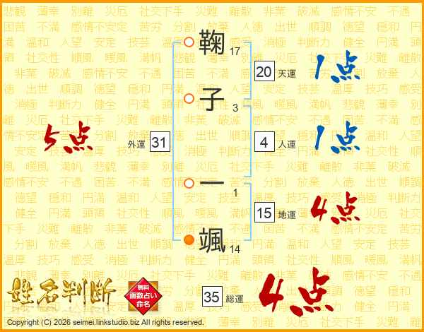 鞠(17画)子(3画) 一(1画)颯(14画)