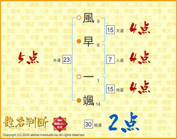 風早一颯さんの天運は15画の4点!