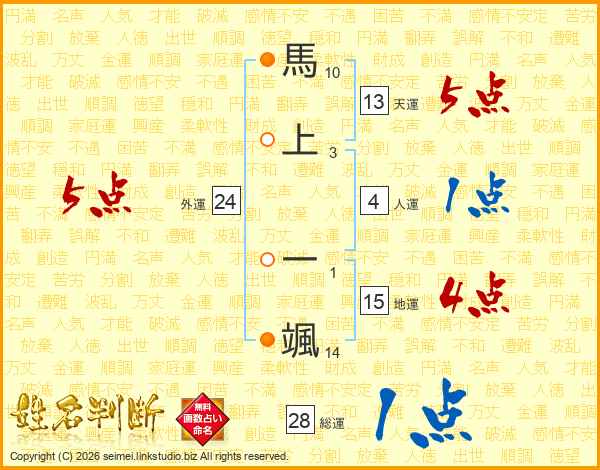 馬上一颯さんの総運は28画の1点!
