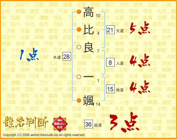 高(10画)比(4画)良(7画) 一(1画)颯(14画)