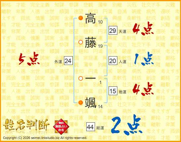 高藤一颯さんの総運は44画の2点!