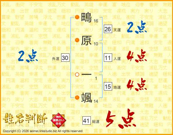 鴫原一颯さんの総運は41画の5点!