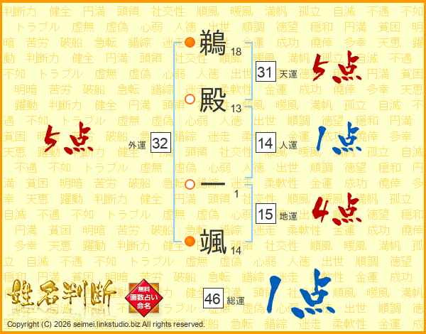 鵜殿一颯さんの総運は46画の1点!