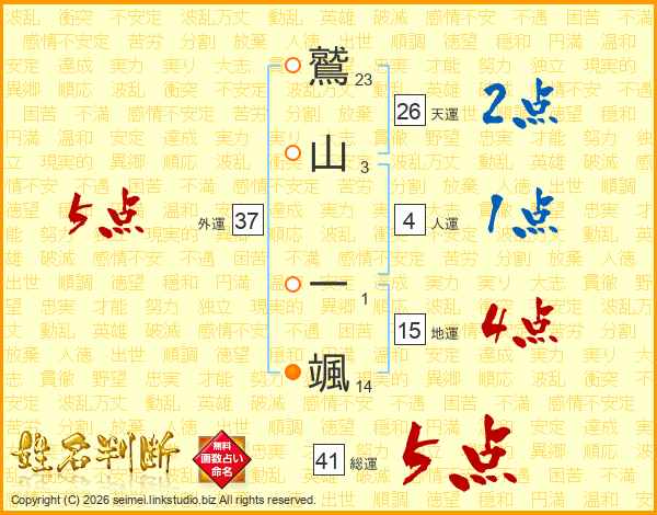 鷲山一颯さんの総運は41画の5点!