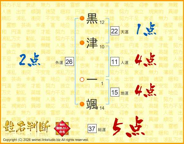 黒津一颯さんの総運は37画の5点!