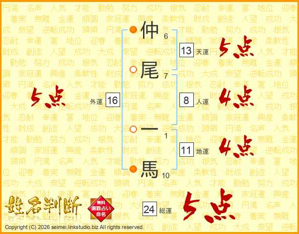 仲尾一馬さんの総運は24画の5点!