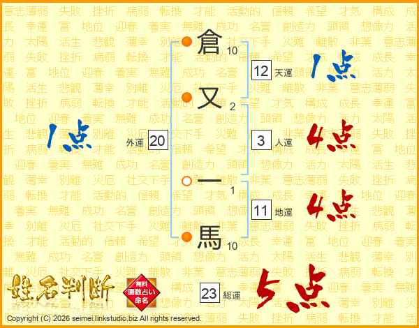倉又一馬さんの総運は23画の5点!