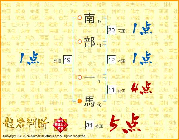 南部一馬さんの総運は31画の5点!