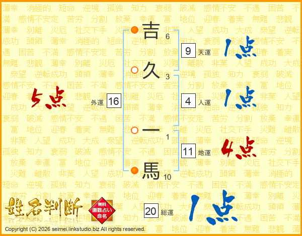 吉久一馬さんの地運は11画の4点!